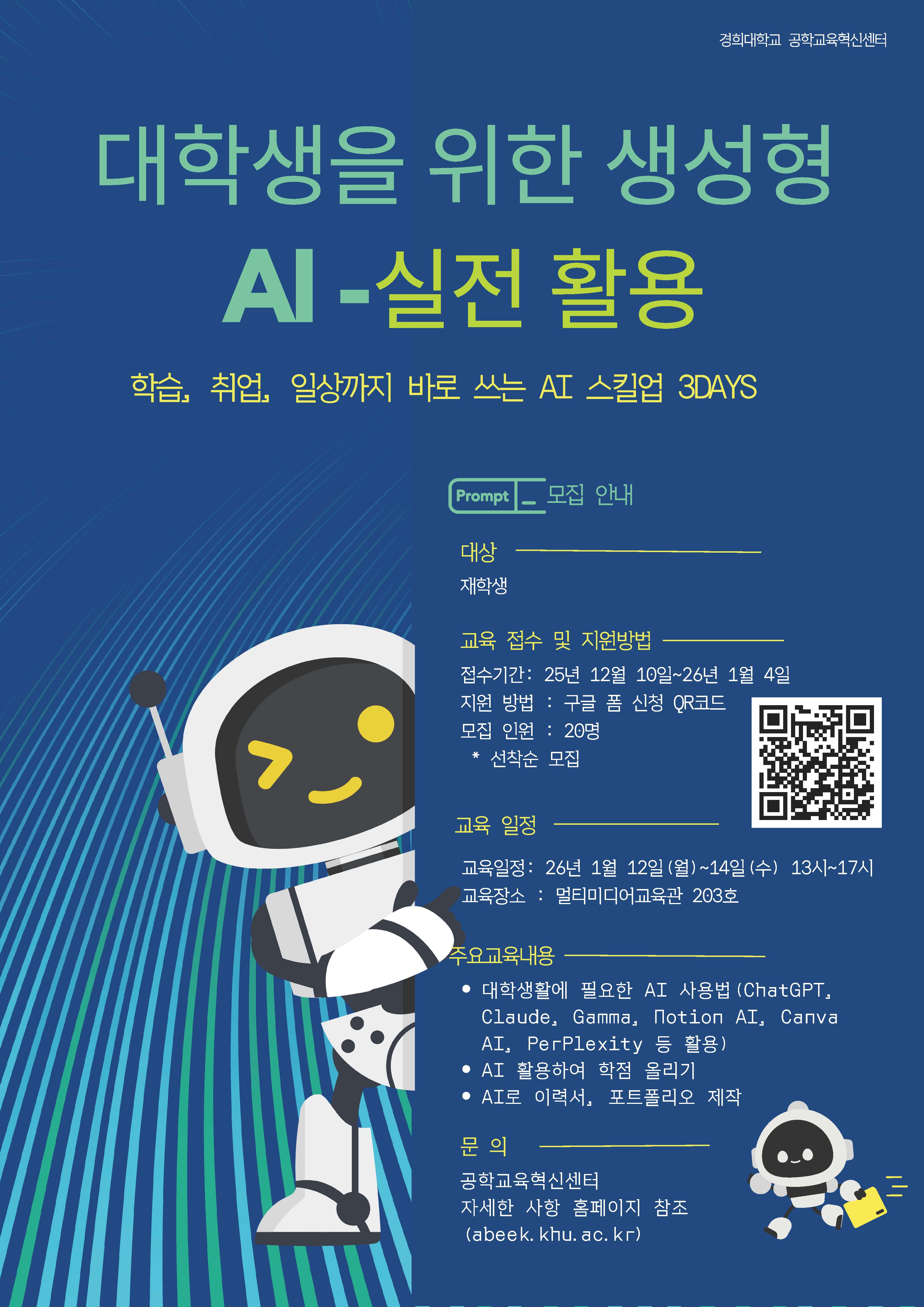 '대학생을 위한 생성형 AI 실전 활용' 안내 및 참여학생을 모집합니다.
