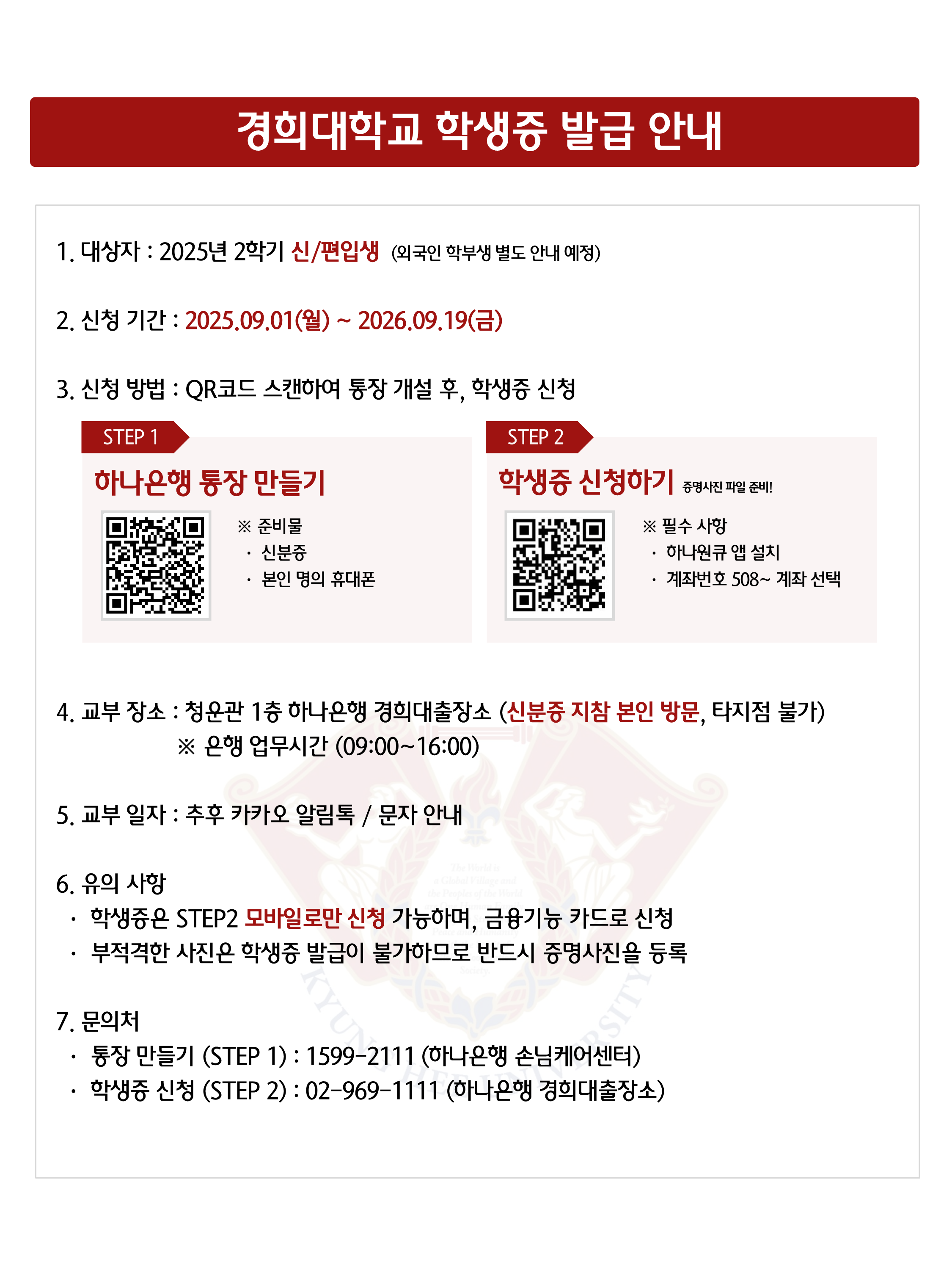 2025학년도 2학기 외국인 신·편입생 학생증 신청 안내