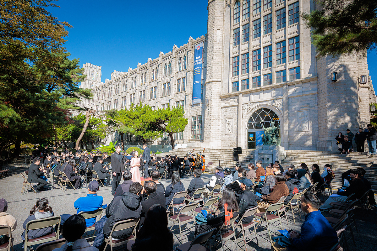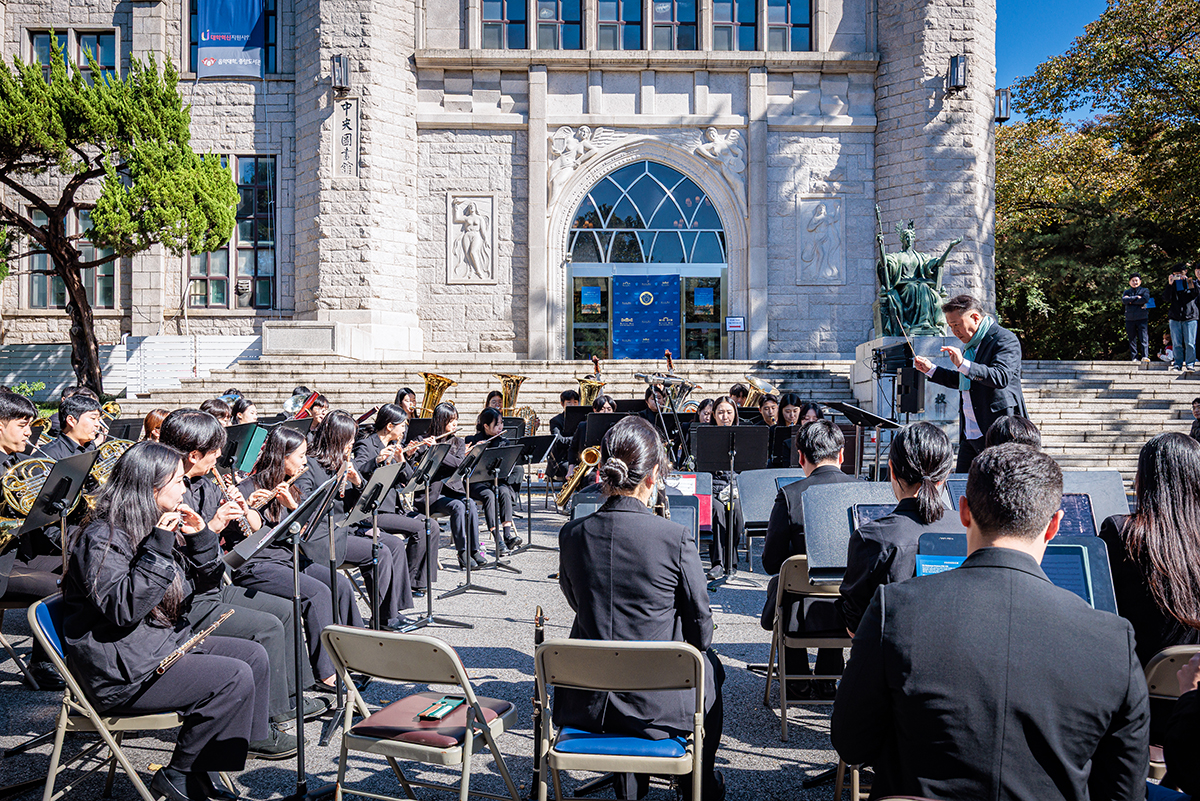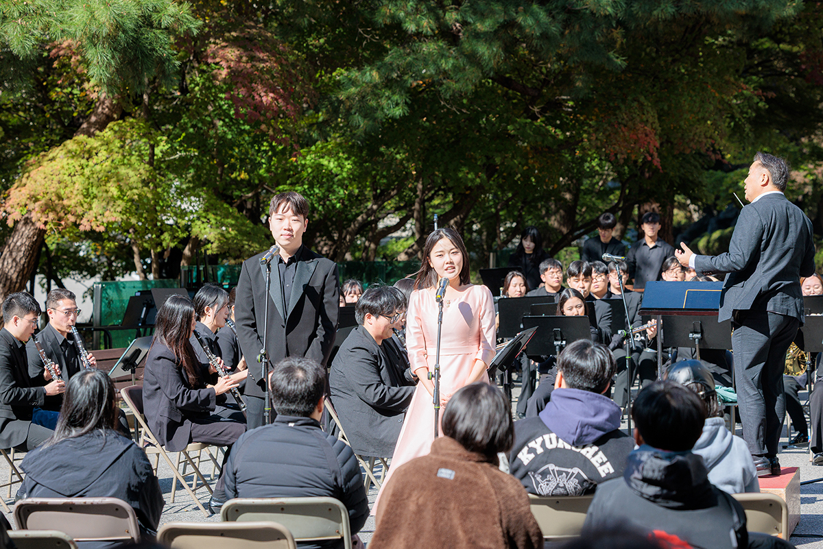 제56회 중앙도서관 작은음악회 <바람이 흐르는 소리: 클래식의 향연, 낭만을 일깨우는 윈드 오케스트라> 연주: 경희 윈드 오케스트라 지도교수: 유병엽 협연: 소프라노 최희원, 바리톤 강산 2025.10.27. 서울캠퍼스 중앙도서관
