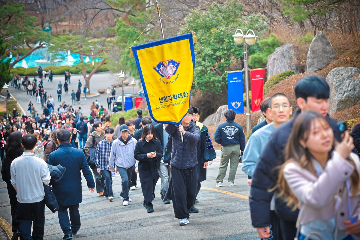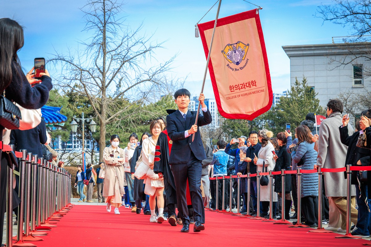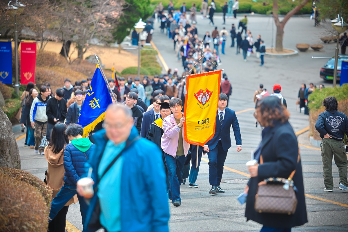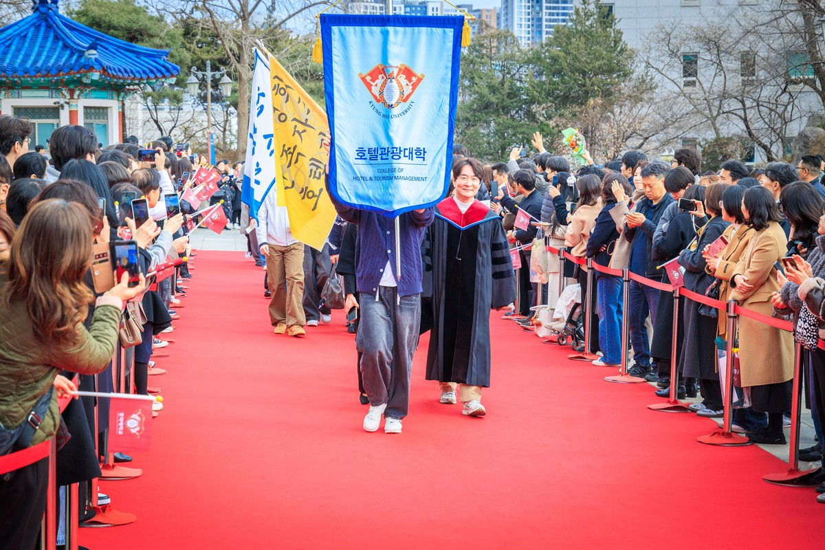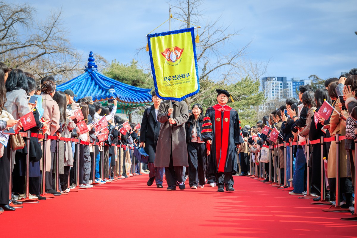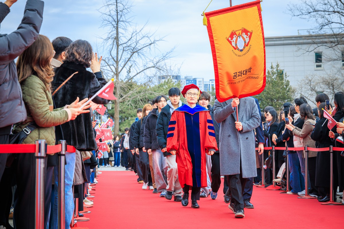 교시탑에서 출발하여 중앙로를 지나 레드카펫이 깔린 평화의 전당을 향해 단대기 행렬이 이어진다. 25개 단과대학 6,067명의 신입생이 경희인으로서 첫걸음을 떼는 경희로운 순간이다. 2013학년도부터 시작된 입학식 단대기 행렬은 경희인으로서 출발을 알리는 상징적인 의식이다.